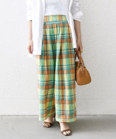 〔ONE SIZE〕SHIPS any:〈洗濯機可能〉マドラス チェック タック フレア パンツ