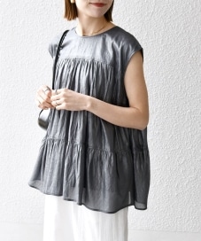 ◆ 商品名: 箔ティアードレースアップフレンチスリーブブラウス