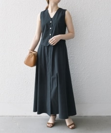上半身はややコンパクトで、ウエストからフレアのデザインになっています。着丈もちょうど良く、シルエットもきれいです。シワになりにくく、洗濯機で洗えるのでお手入れも楽です◎