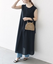 着用アイテム:ロープ デザイン ピンタック フレンチスリーブ ワンピース