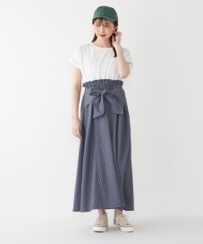 ストライプのボトムは、ゆったりとしたシルエット、これからの時期に