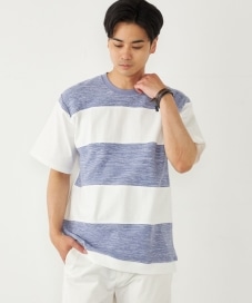 〔LARGE〕SHIPS Colors:〈洗濯機可能〉ニット 切替 ボーダー Tシャツ