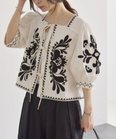 〔ONE SIZE〕quaranciel:〈洗濯機可能〉エンブロイダリー スクエアネック ブラウス
