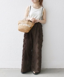 〔ONE SIZE〕SHIPS any:〈手洗い可能〉3D フラワー エンブロイダリー ギャザー サロペット