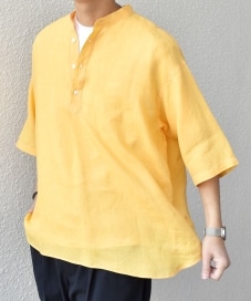 今回はピュアリネンのバンドプルオーバーシャツにオーディナリーフィッツのペイントデニムを合わせました!