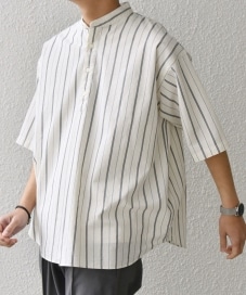 ◆ 商品名: SHIPS any: 〈洗濯機可能〉コットン/リネン ストライプ バンド スキッパー ハーフスリーブ シャツ◇