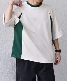 〔MEDIUM〕SHIPS any:〈洗濯機可能〉リブ パネル スポーティー ジャージー Tシャツ◇
