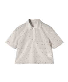着心地:スパンコールのついた、短丈の今年らしいポロシャツです。他のアイテムがワントーンで落ち着いた印象ですが、このトップスが一つ加わると華やかになっておすすめです。デニムなどカジュアルアイテムとも相性◎