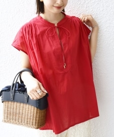 〈手洗い可能〉スキッパー タック フレンチ スリーブ ブラウス