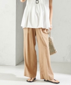 【素材感・着心地】柔らかいコットン/リネン素材。タックが入っていますが生地に落ち感がある為、スッキリと見えるシルエットです