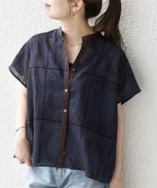 〔ONE SIZE〕SHIPS any:〈手洗い可能〉エンブロイダリー レース シアー フレンチスリーブ シャツ
