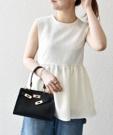 ◆商品名: サテン ジャカード ノースリ ペプラム リボン ブラウス