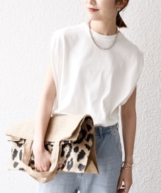 着用アイテム:USAコットン ラウンドヘム ノースリーブ TEE ホワイト