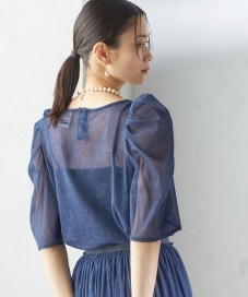 〔ONE SIZE〕troisiemeCHACO:〈手洗い可能〉デニム プリント チュール ブラウス