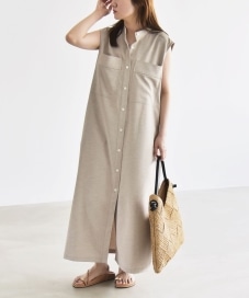 着用アイテム:ウーステッド ノースリーブ バンドカラー シャツ ワンピース