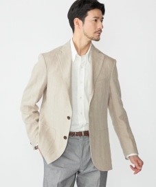 ジャケット、ネクタイは麻素材で堅すぎない印象に