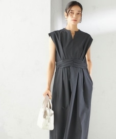 〔ONE SIZE〕〈手洗い可能〉サッカー ストレッチ ドット 無地 フレンチ スリーブ ワンピース