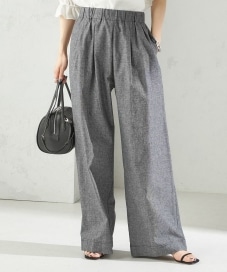 〔36〕〈接触冷感・手洗い可能〉麻混 シャンブレー ウエスト ゴム ワイド パンツ