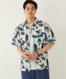 〔LARGE〕SHIPS Colors:〈洗濯機可能〉メッシュ 総柄 プリント シャツ