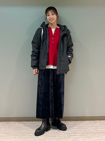 サイズ感:程よいゆとりあり。着丈はヒップにかかるくらい。