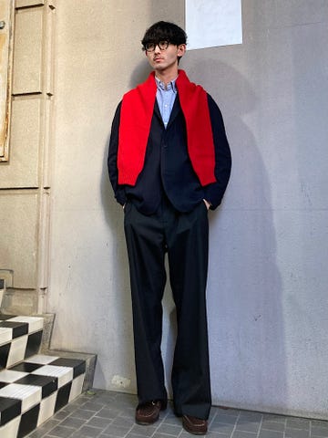 着用感:清涼感のあるシアサッカー素材のジャケットです。ポロシャツの他、Tシャツなどとも相性が良いです。