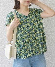 着用アイテム:〈洗濯機可能〉ボタニカル プリント Vネック ブラウス
