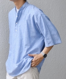 〔LARGE〕SHIPS any: コットン/リネン バンド スキッパー ハーフスリーブ シャツ◇