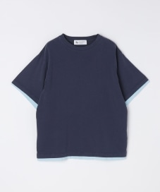 裾と袖に同系色のレイヤードを入れたTシャツ。