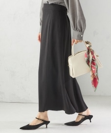 着心地:バックサテンでサラリとした素材感で綺麗めに履けます。動いた時に揺れる裾が可愛いポイントです!合わせるトップスでカジュアルにもドレッシーにもスタイリング出来そうです。