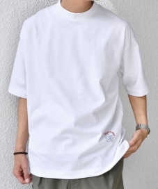 〔SMALL〕SHIPS any: オーガニック コットン ワンポイント ロゴ プリント×刺繍 スピンドル Tシャツ◇