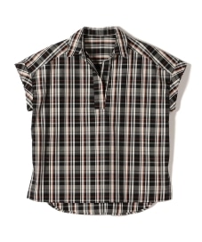 〔ONE SIZE〕innowave:〈手洗い可能〉TC チェック スキッパー フレンチスリーブ ブラウス