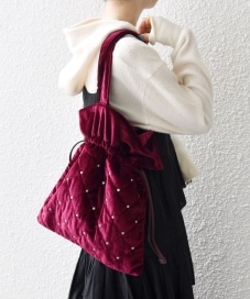 〔ONE SIZE〕SHIPS any: ビジュー ポリエステル ベロア キルティング ドロスト トートバッグ