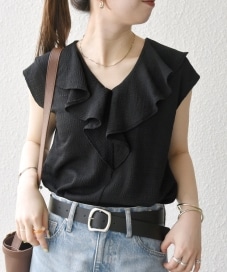 〔ONE SIZE〕SHIPS any:〈洗濯機可能〉シアー ジャージー ラッフル フレンチ カット ブラウス