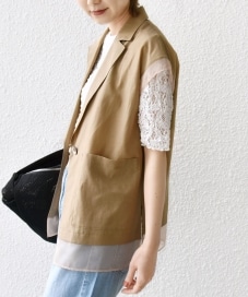 〔ONE SIZE〕【WEB限定】〈手洗い可能〉シアー コンビ テーラード ベスト