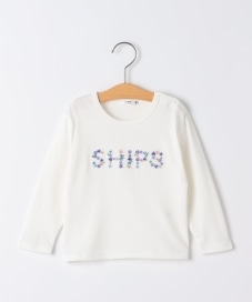 〔80〕SHIPS KIDS:80〜90cm / フラワー 刺繍 ロゴ 長袖 Tシャツ