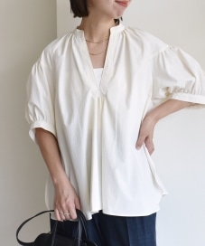 〔ONE SIZE〕〈手洗い可能〉RENU ソフト タイプライター スキッパー 5分袖 ブラウス