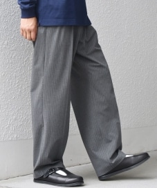 〔SMALL〕SHIPS any: LIM BLESS ソリッド/ストライプ 2プリーツ セミワイド イージーパンツ(セットアップ対応)◇