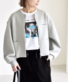 着用アイテム:ポンチ ノーカラー ショート ジップ ブルゾン