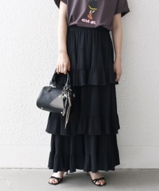 〔ONE SIZE〕SHIPS any:〈洗濯機可能〉ティアード ラッフル マキシ スカート