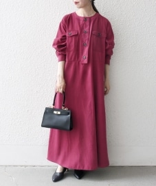 ◆ 商品名: ピーチスキンクルーネックポケットフレアワンピース