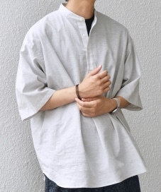 〔SMALL〕SHIPS any: コットン/リネン バンド スキッパー ハーフスリーブ シャツ◇