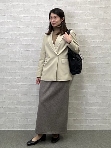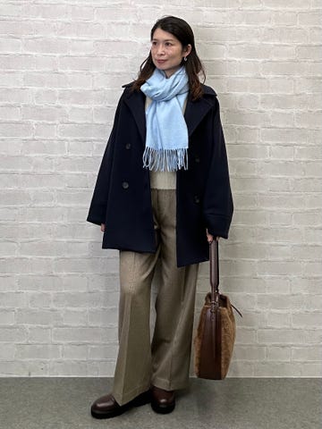 カーブシルエットのチノパン。体のラインを拾いにくく、季節問わず着回しの効く「丁度いいパンツ」です。スニーカー合わせでも、パンプスで大人カジュアルでも決まります。