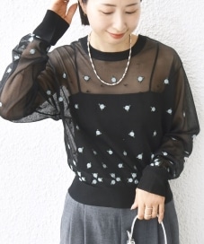 素材感:透け感のあるシアーな素材感で、フラワーモチーフの刺繍が施されています。