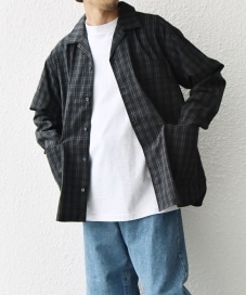 〔MEDIUM〕SHIPS any: モノトーン チェック サイドポケット シャツ ジャケット◇