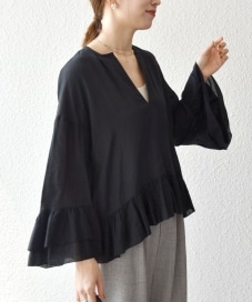 着用アイテム:SHIPS any:〈洗濯機可能〉コットン モス ラッフル フリル キーネック ブラウス