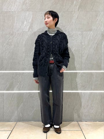 素材感・着心地:程よい厚さで、ハリのあるデニム素材。Iラインシルエットで身体のラインを拾わずゆったりとした着心地です。