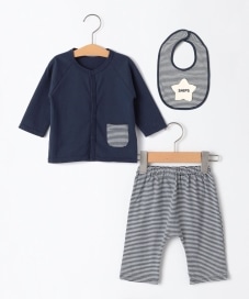 カーディガン、パンツ、スタイ3点セットのギフトボックス