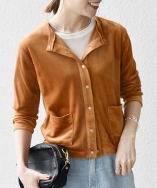 〔ONE SIZE〕SHIPS any:〈洗濯機可能〉ポリエステル ベロア コンパクト スナップ カーディガン