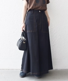 〔36〕《一部予約》SHIPS any:〈洗濯機可能〉チノ ステッチ フレア ロング スカート