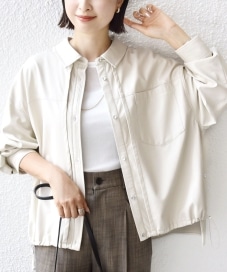 〔ONE SIZE〕【WEB限定】〈手洗い可能〉合成皮革 裾 ドロスト シャツ 羽織